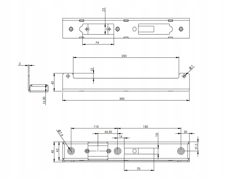 Rozstaw otworów uniwersalny, pasuje do kaset do elektrozaczepów.