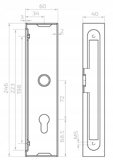 Produkt niemalowany, nieocynkowany, przeznaczony do wspawania w ramę furtki lub w stalową ramę drzwi.