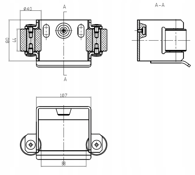 Na tylnej ściance znajdują się dwa otwory montażowe oraz gumowy odbój.