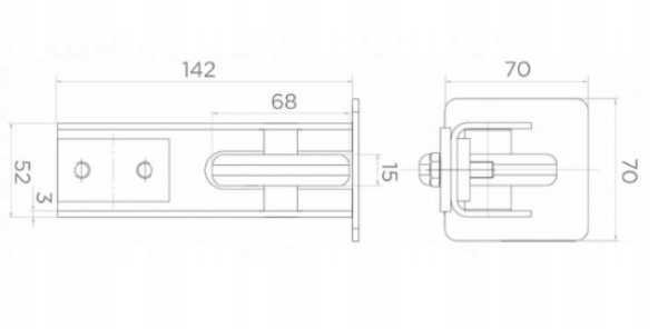 Uchwyt górny do bram przesuwnych samonośnych i szynowych, który stabilizuje je po zamknięciu uniemożliwiając ruchy boczne.
