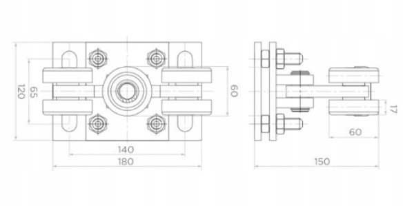 - wózki jezdne 5-rolkowe, wahliwe z regulacją, podstawa o wymiarach 180x120