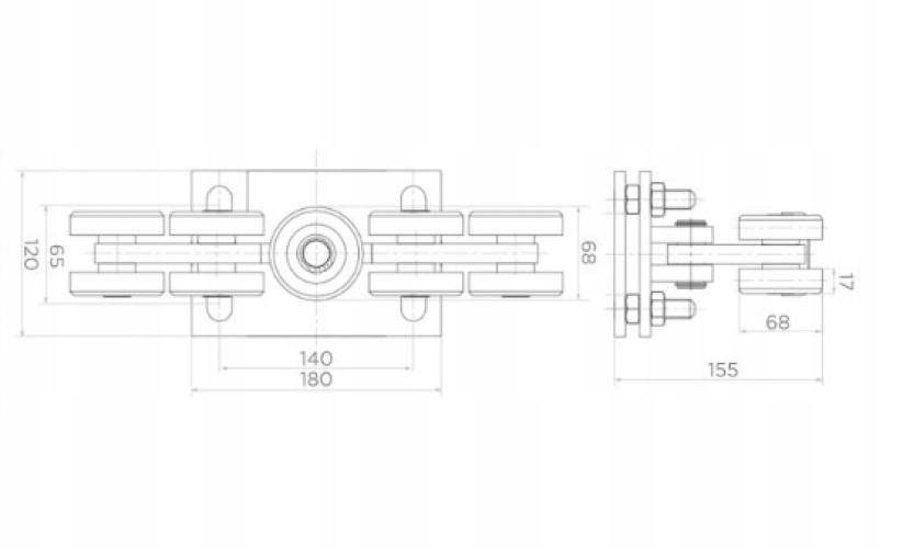 ✅ 2 wózki jezdne 9-rolkowe, wahliwe z regulacją, podstawa o wymiarach 180x120, rolki stalowe