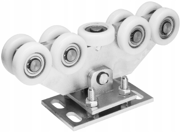 Rolka prowadząca służąca do utrzymania szyny (ceownika) w pionie w trakcie zamykania i otwierania bramy.