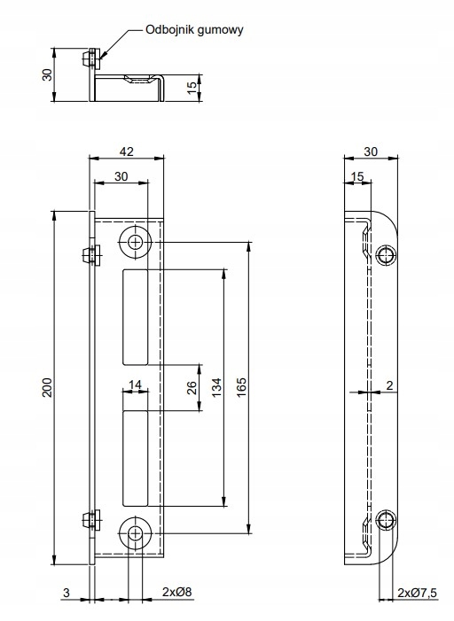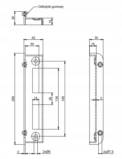 Zaczep posiada 2 x otwory z przetłoczeniami do pewnego montażu bez wystających łbów. Przeznaczone do dokręcenia - posiada ząbki w podstawie, których zadaniem jest zabezpieczenie przed przesuwaniem się po dokręceniu. Konstrukcja zaczepu uniemożliwia otwarcie drzwi w przeciwnym kierunku.