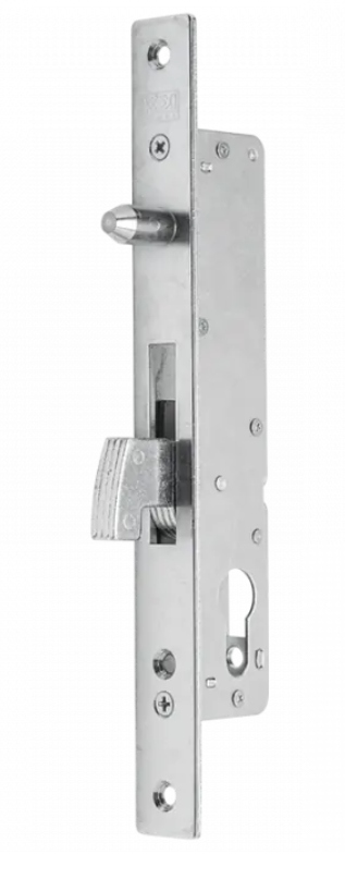 Wzmocniony zamek hakowy wpuszczany, stosowany w bramach wjazdowych, drzwiach i furtkach przesuwnych.